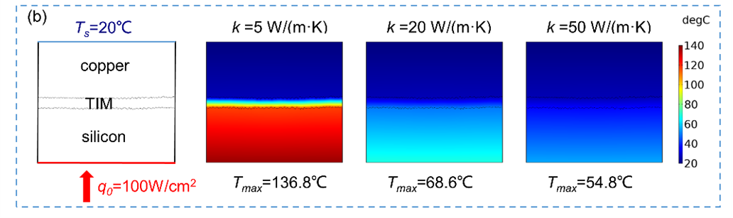 圖4 不同熱導(dǎo)率的熱界面材料的熱效應(yīng)